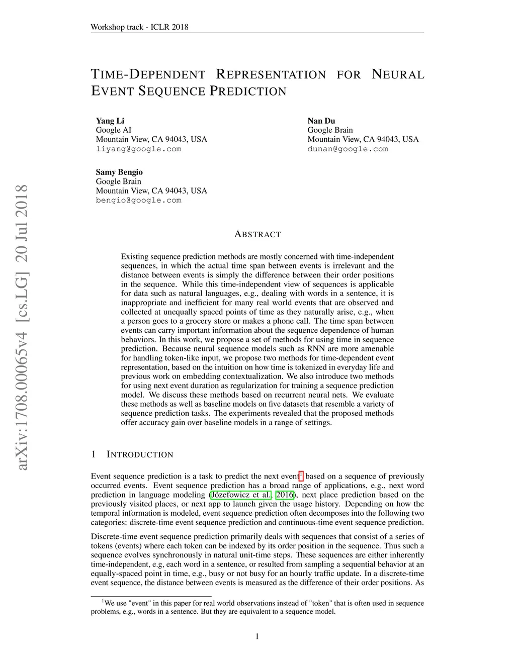 Time-Dependent Representation for Neural Event Sequence Prediction