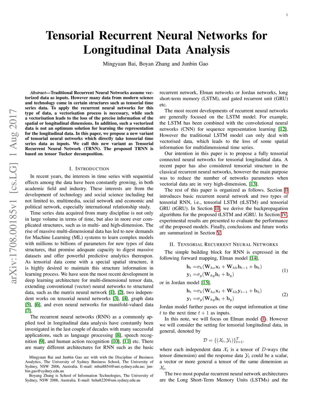 Tensorial Recurrent Neural Networks for Longitudinal Data Analysis