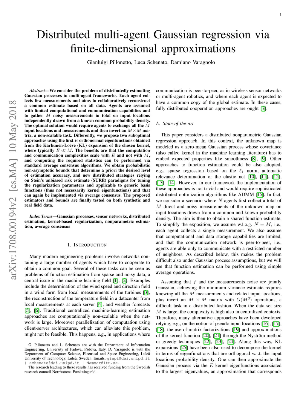 Distributed multi-agent Gaussian regression via finite-dimensional