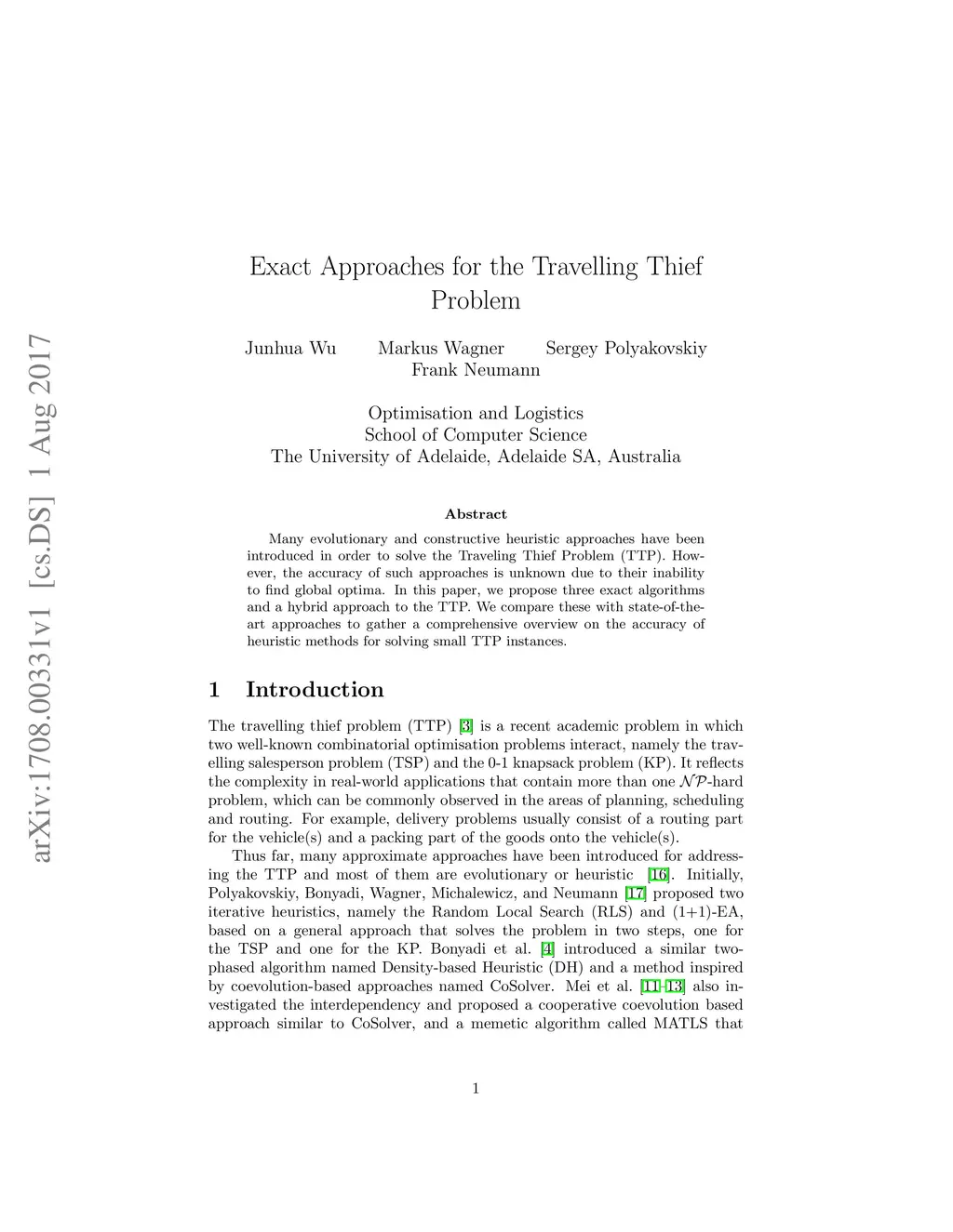 Exact Approaches for the Travelling Thief Problem