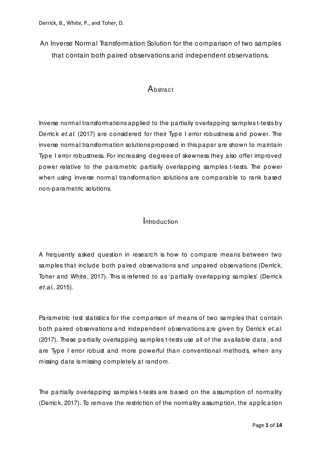 Inverse normal transformations applied to the partially overlapping samples t-tests by Derrick et.al. (2017) are considered for their Type I error robustness and power. The inverse normal transformation solutions proposed in this paper are shown to maintain Type I error robustness. For increasing degrees of skewness they also offer improved power relative to the parametric partially overlapping samples t-tests. The power when using inverse normal transformation solutions are comparable to rank based non-parametric solutions.