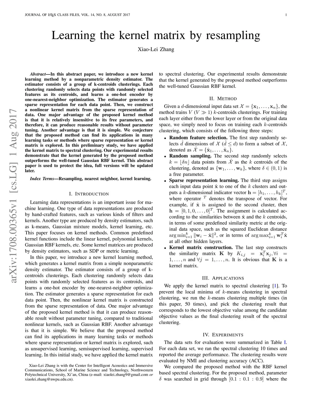 Learning the kernel matrix by resampling