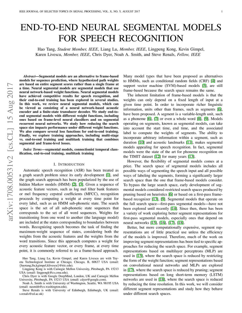End-to-End Neural Segmental Models for Speech Recognition