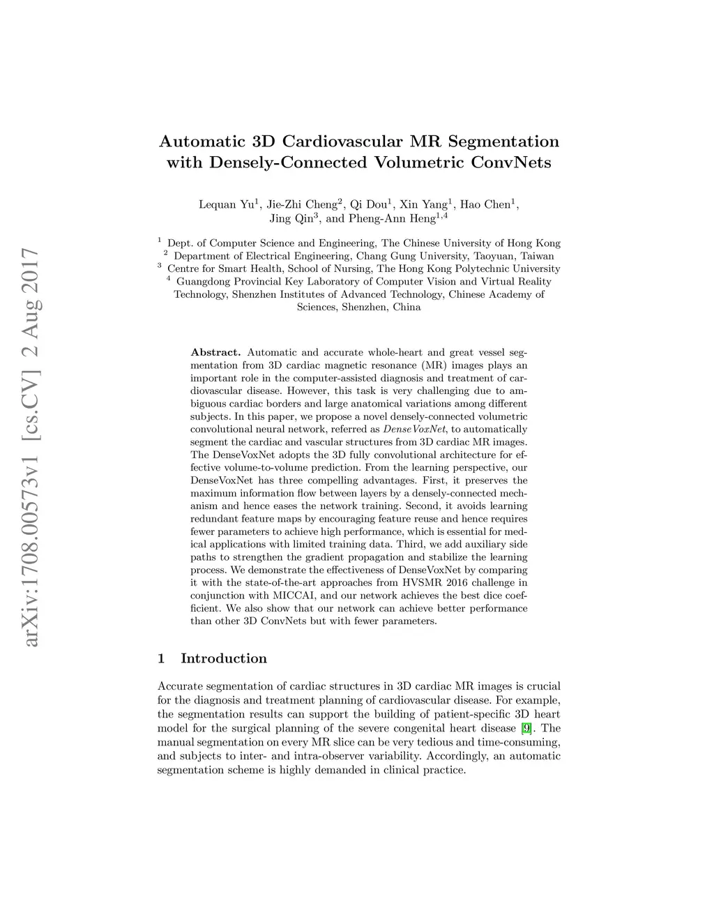 Automatic 3D Cardiovascular MR Segmentation with Densely-Connected