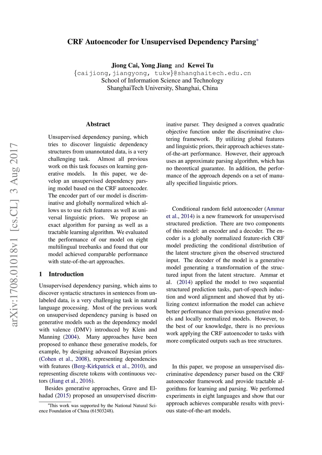 CRF Autoencoder for Unsupervised Dependency Parsing