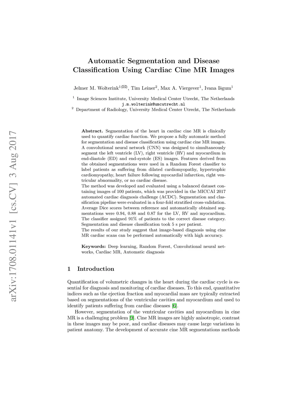 Automatic Segmentation and Disease Classification Using Cardiac Cine MR