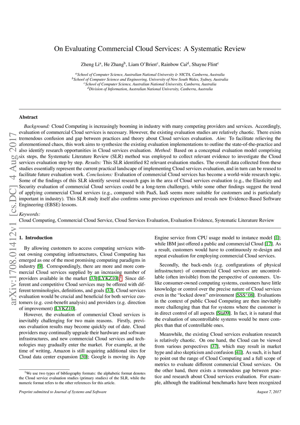 On Evaluating Commercial Cloud Services: A Systematic Review