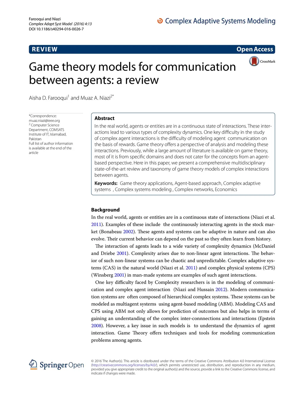 In the real world, agents or entities are in a continuous state of interactions. These inter- actions lead to various types of complexity dynamics. One key difficulty in the study of complex agent interactions is the difficulty of modeling agent communication on the basis of rewards. Game theory offers a perspective of analysis and modeling these interactions. Previously, while a large amount of literature is available on game theory, most of it is from specific domains and does not cater for the concepts from an agent- based perspective. Here in this paper, we present a comprehensive multidisciplinary state-of-the-art review and taxonomy of game theory models of complex interactions between agents.