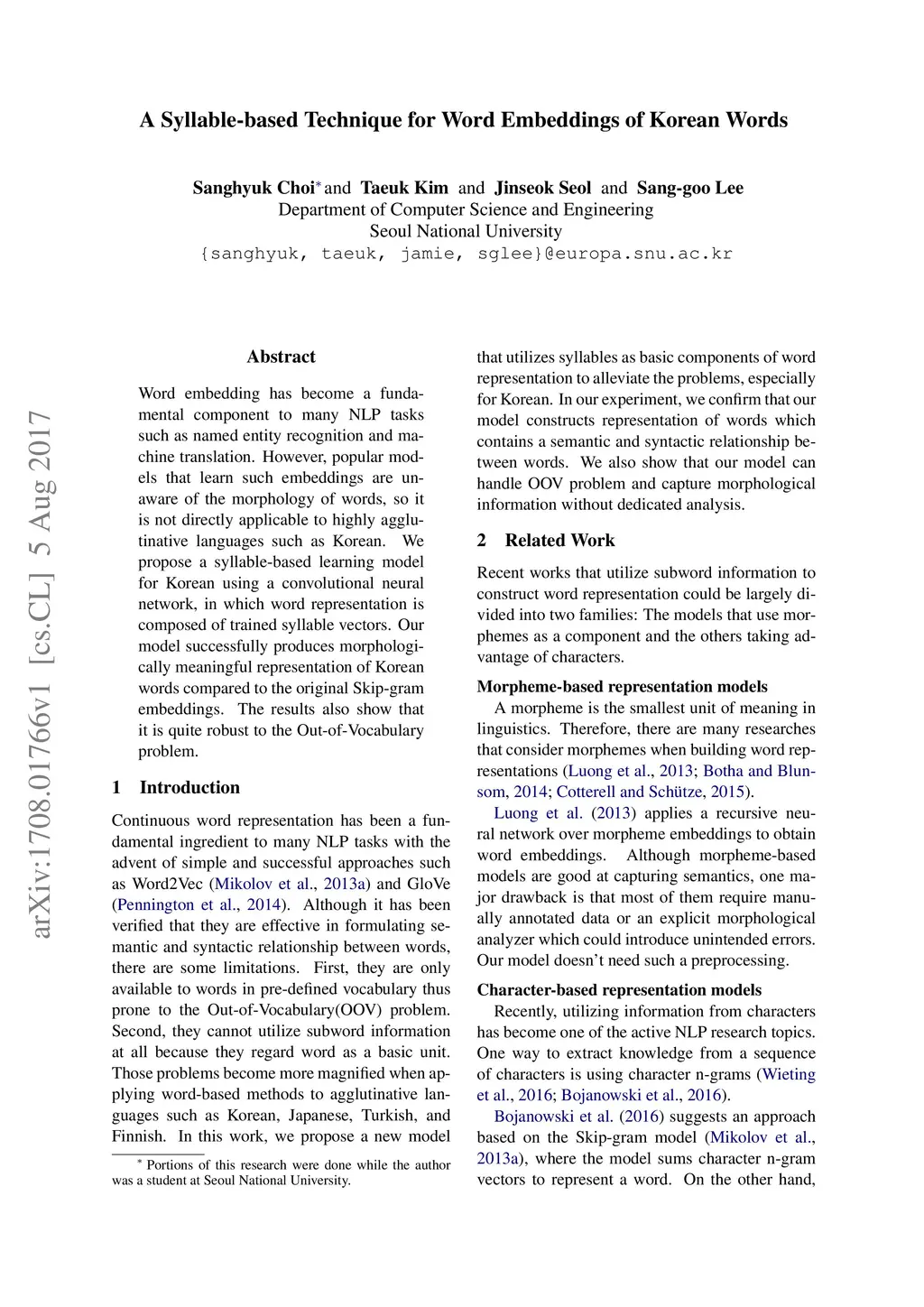 A Syllable-based Technique for Word Embeddings of Korean Words
