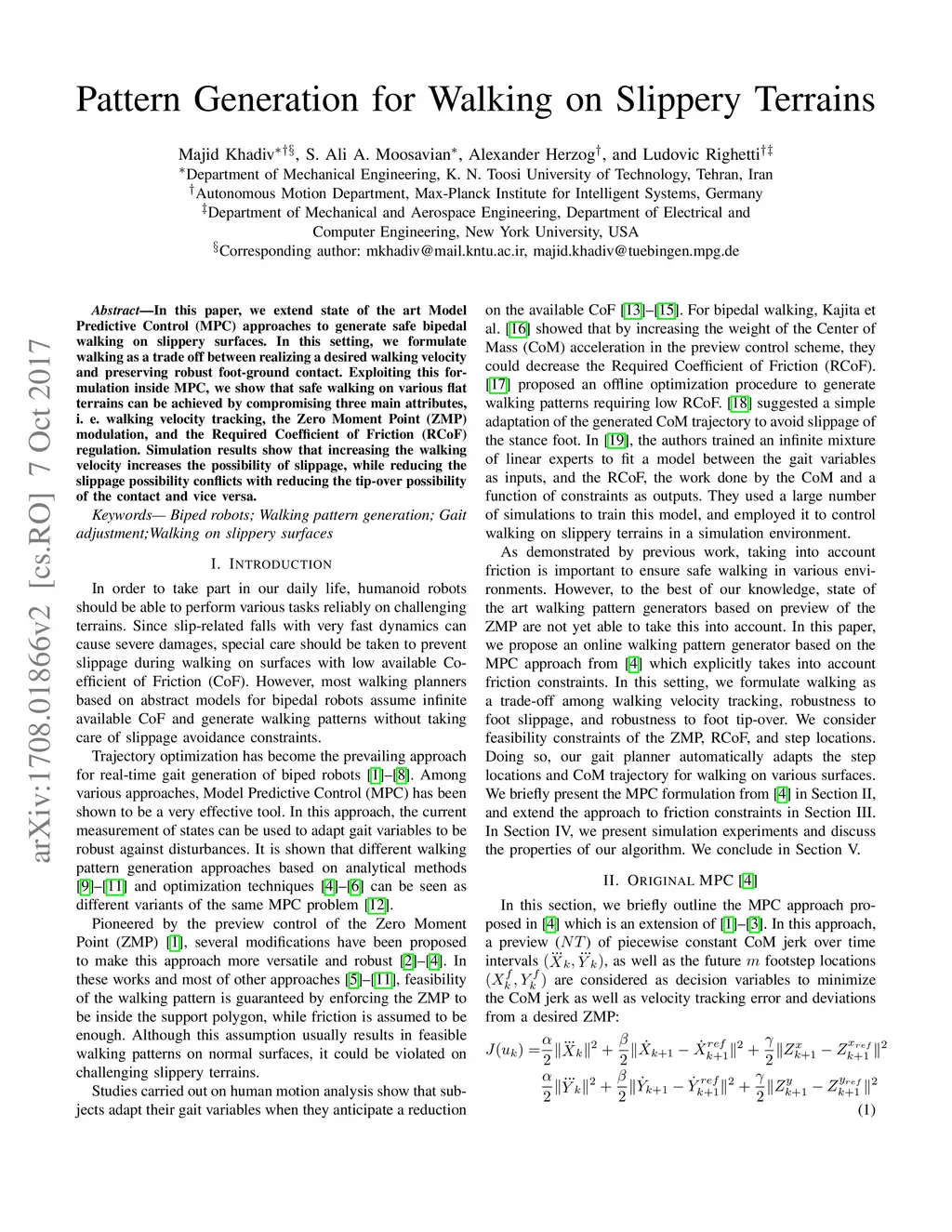 Pattern Generation for Walking on Slippery Terrains