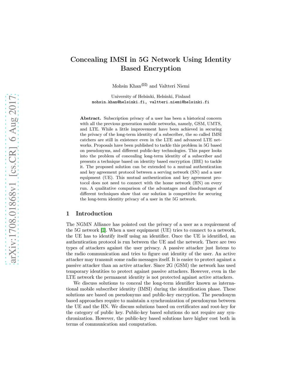 Concealing IMSI in 5G Network Using Identity Based Encryption