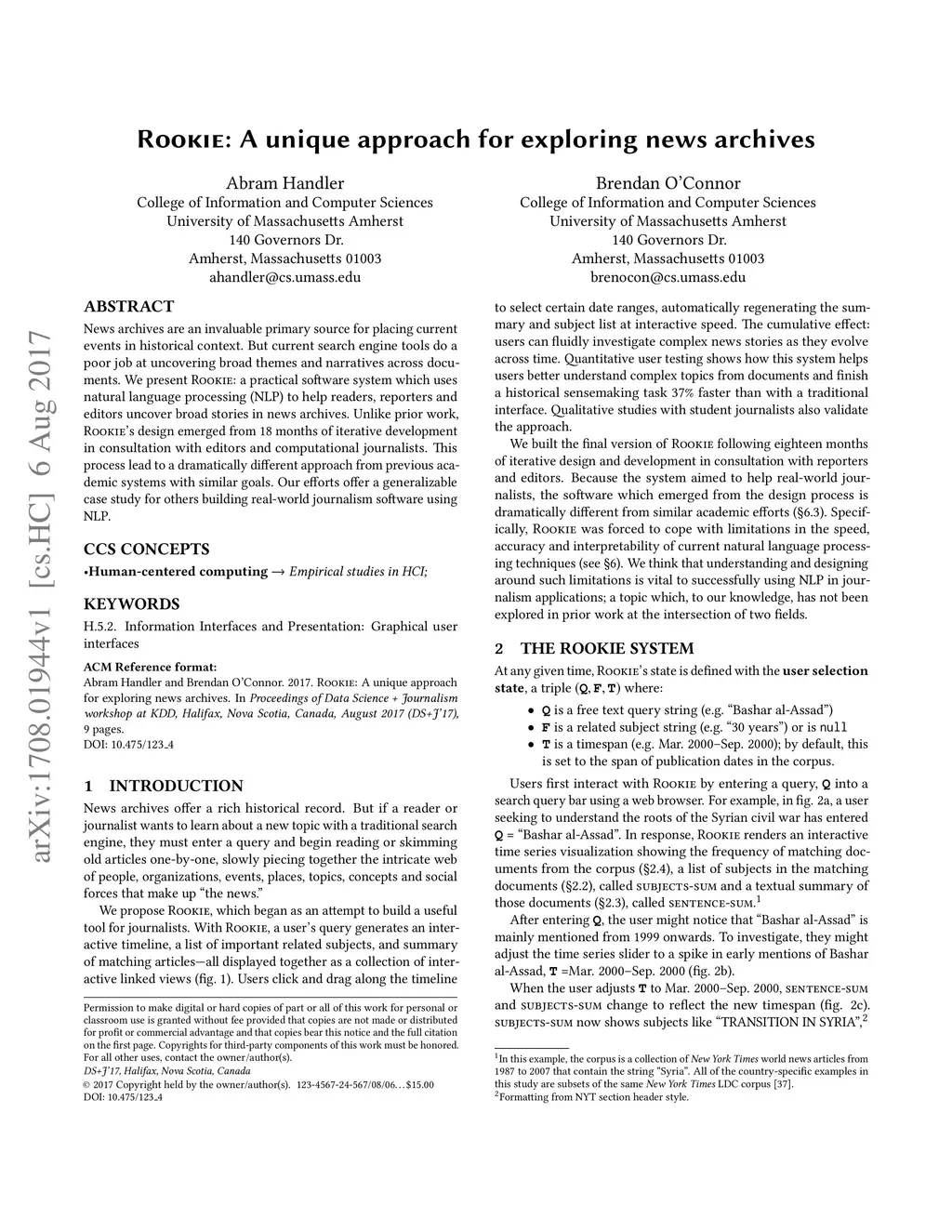 Rookie: A unique approach for exploring news archives