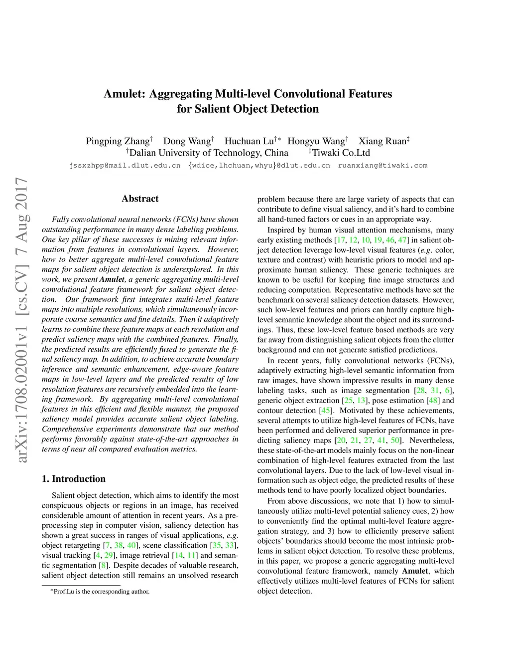 Amulet: Aggregating Multi-level Convolutional Features for Salient