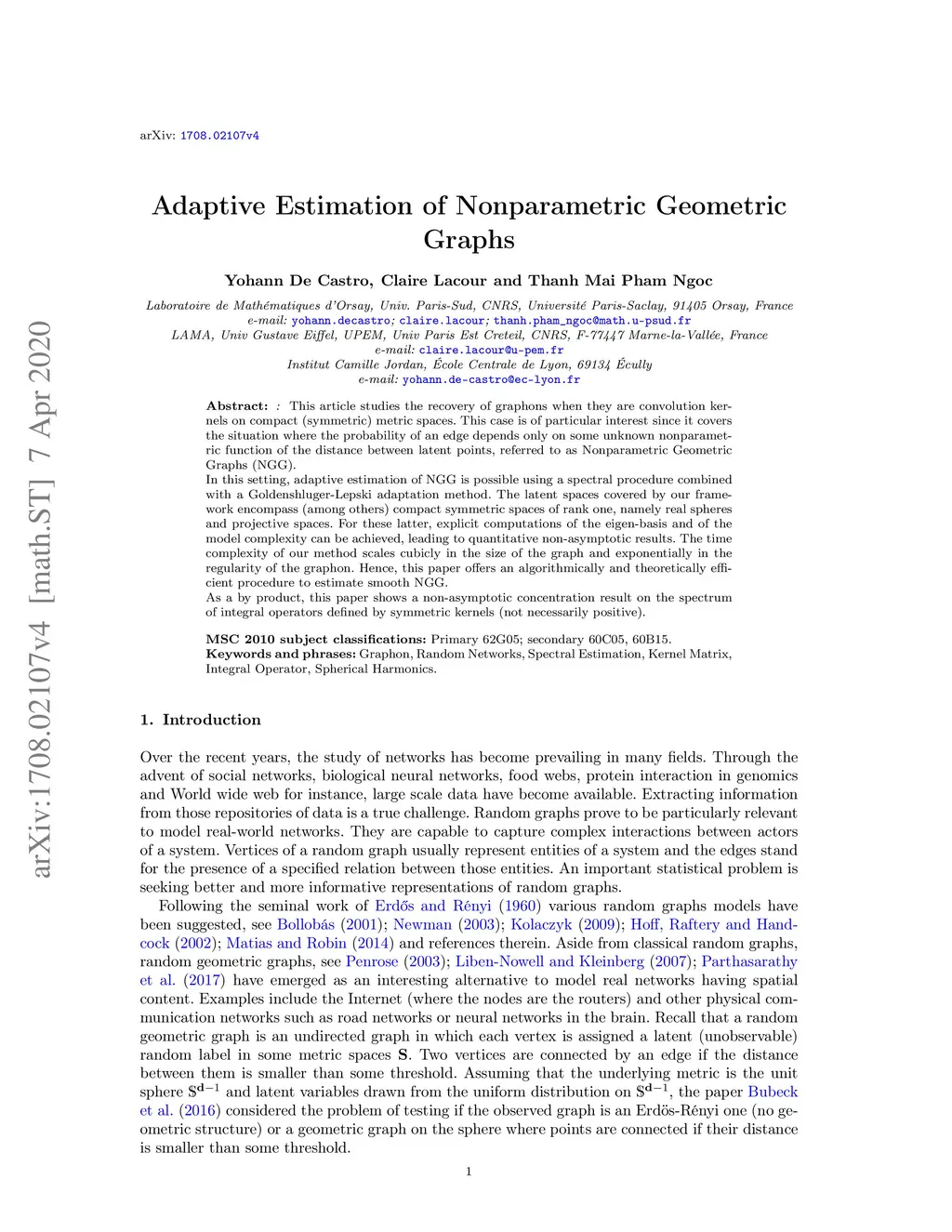 Adaptive Estimation of Nonparametric Geometric Graphs