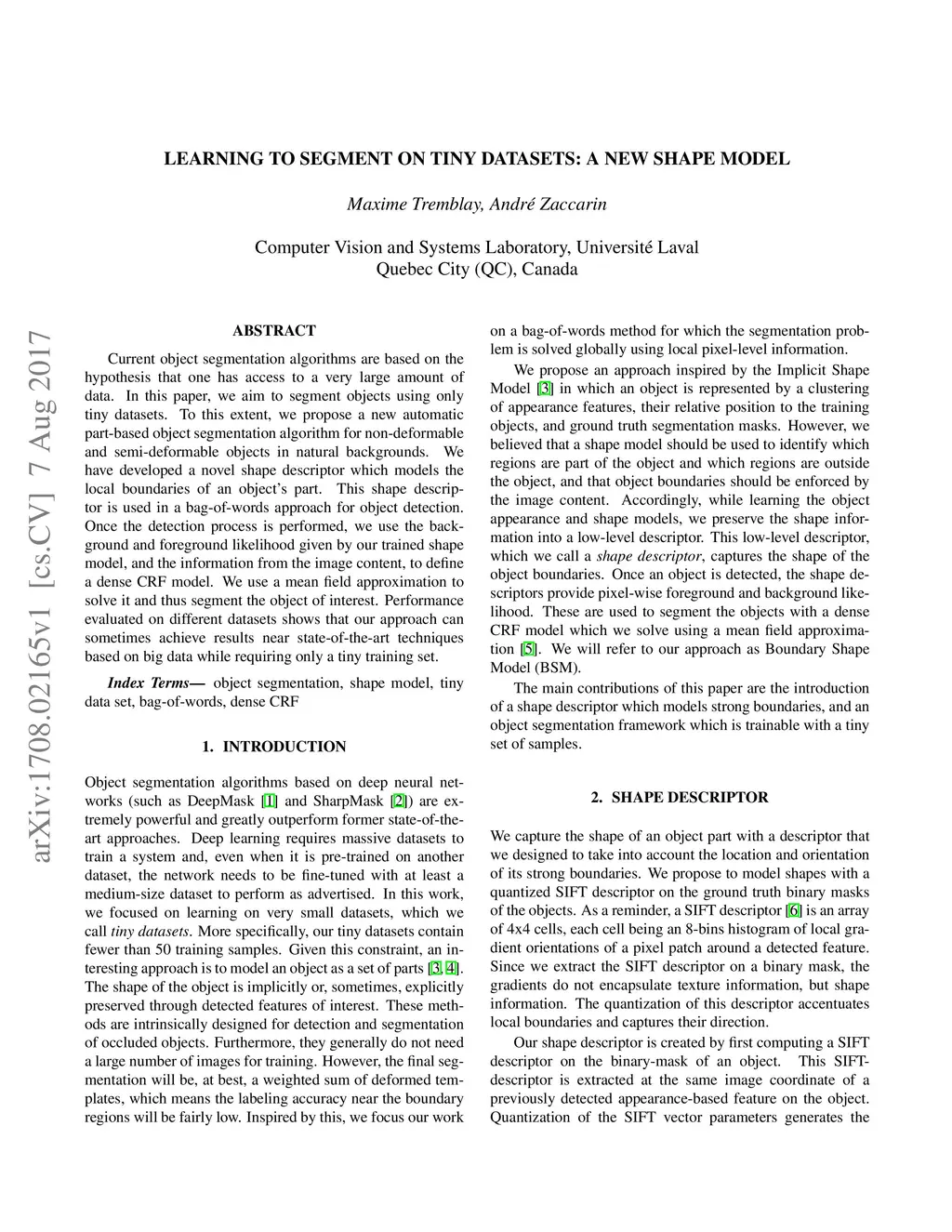 Learning to segment on tiny datasets: a new shape model