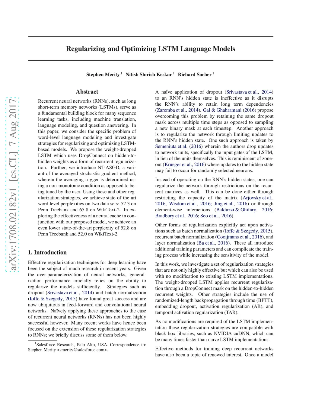 Regularizing and Optimizing LSTM Language Models