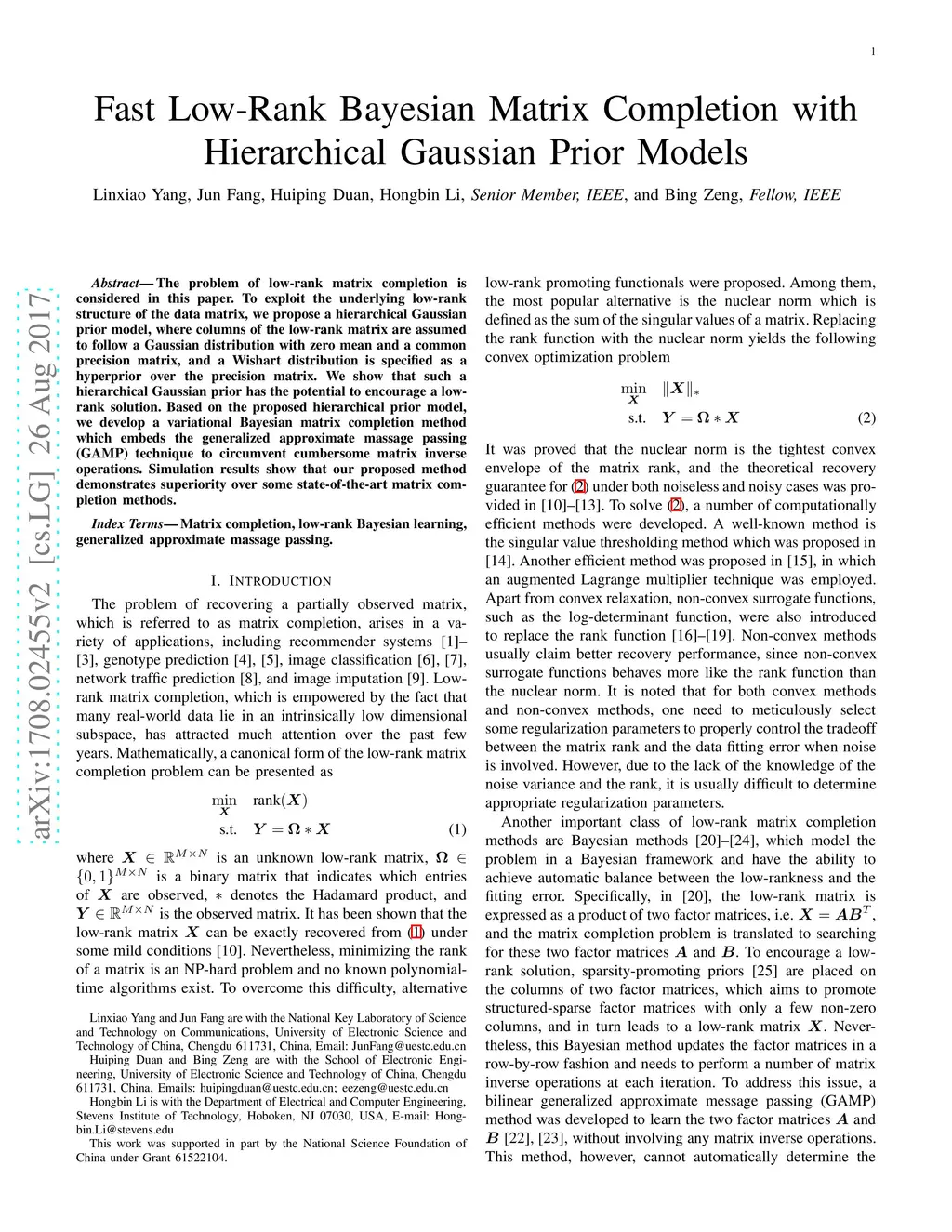 Fast Low-Rank Bayesian Matrix Completion with Hierarchical Gaussian