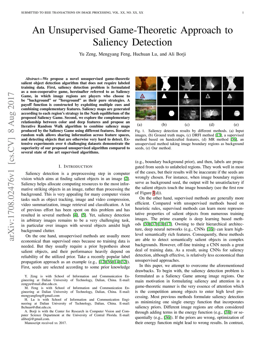 An Unsupervised Game-Theoretic Approach to Saliency Detection