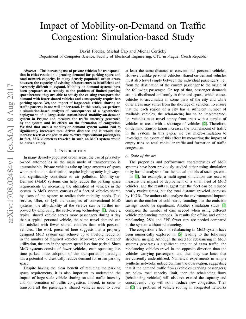 The increasing use of private vehicles for transportation in cities results in a growing demand for parking space and road network capacity. In many densely populated urban areas, however, the capacity of existing infrastructure is insufficient and extremely difficult to expand. Mobility-on-demand systems have been proposed as a remedy to the problem of limited parking space because they are able to satisfy the existing transportation demand with fewer shared vehicles and consequently require less parking space. Yet, the impact of large-scale vehicle sharing on traffic patterns is not well understood. In this work, we perform a simulation-based analysis of consequences of a hypothetical deployment of a large-scale station-based mobility-on-demand system in Prague and measure the traffic intensity generated by the system and its effects on the formation of congestion. We find that such a mobility-on-demand system would lead to significantly increased total driven distance and it would also increase levels of congestion due to extra trips without passengers. In fact, 38% kilometers traveled in such an MoD system would be driven empty.