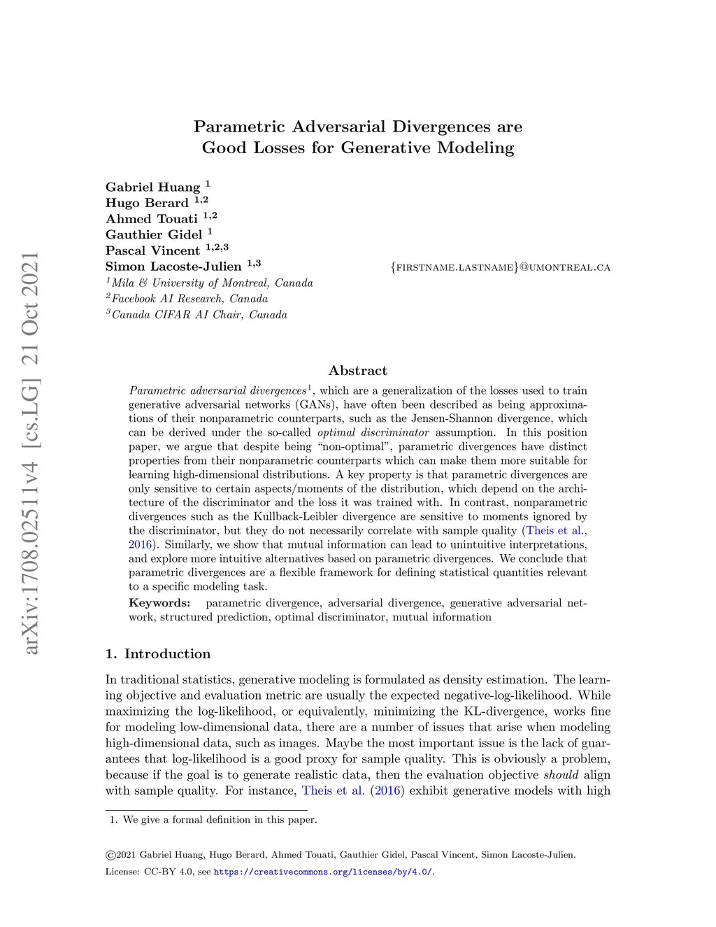 Parametric Adversarial Divergences are Good Losses for Generative