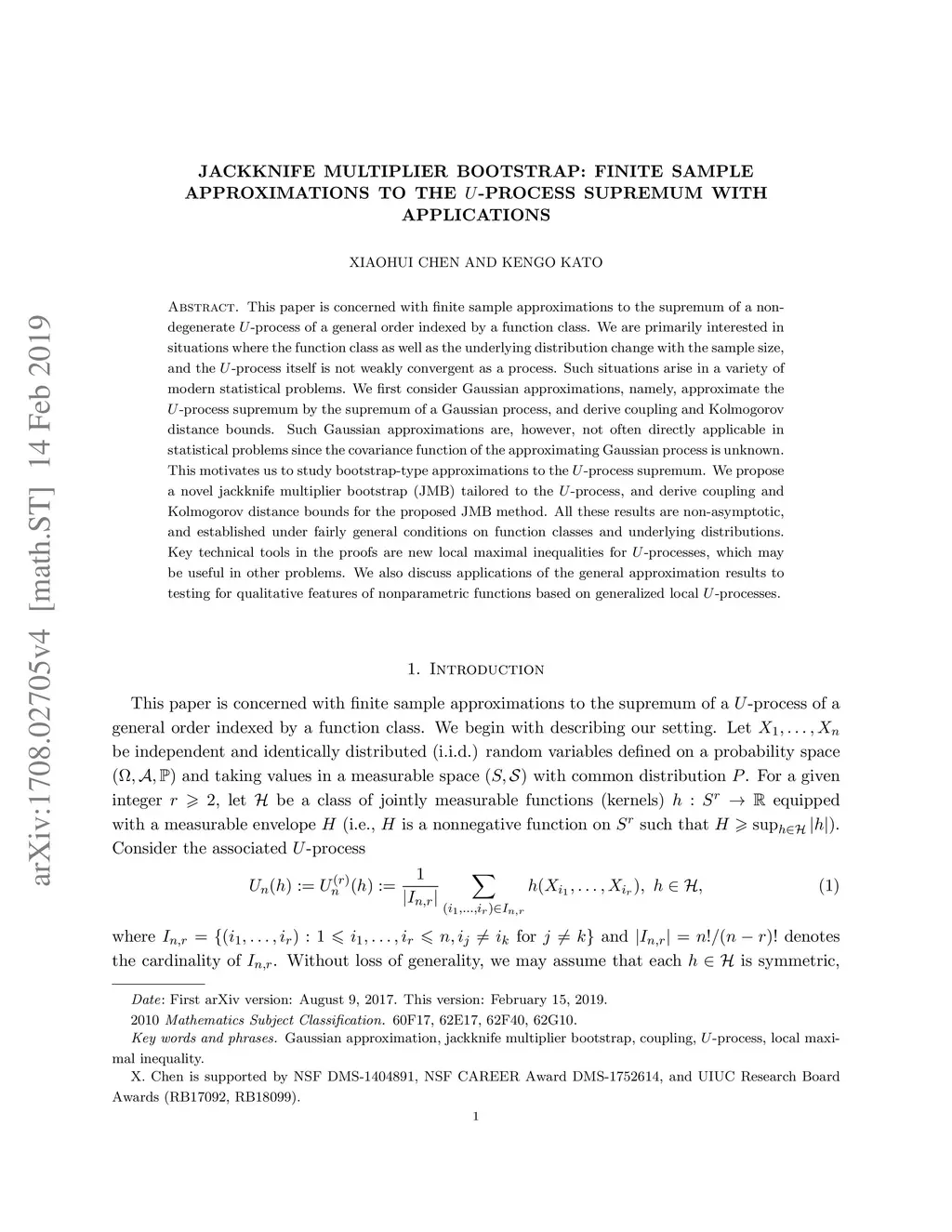 This paper is concerned with finite sample approximations to the supremum of a non-degenerate -process of a general order indexed by a function class. We are primarily interested in situations where the function class as well as the underlying distribution change with the sample size, and the -process itself is not weakly convergent as a process. Such situations arise in a variety of modern statistical problems. We first consider Gaussian approximations, namely, approximate the -process supremum by the supremum of a Gaussian process, and derive coupling and Kolmogorov distance bounds. Such Gaussian approximations are, however, not often directly applicable in statistical problems since the covariance function of the approximating Gaussian process is unknown. This motivates us to study bootstrap-type approximations to the -process supremum. We propose a novel jackknife multiplier bootstrap (JMB) tailored to the -process, and derive coupling and Kolmogorov distance bounds for the proposed JMB method. All these results are non-asymptotic, and established under fairly general conditions on function classes and underlying distributions. Key technical tools in the proofs are new local maximal inequalities for -processes, which may be useful in other problems. We also discuss applications of the general approximation results to testing for qualitative features of nonparametric functions based on generalized local -processes.