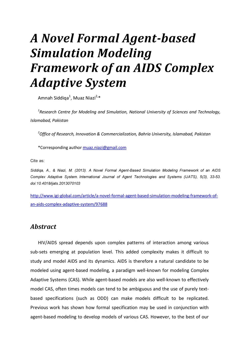 A Novel Formal Agent-based Simulation Modeling Framework of an AIDS