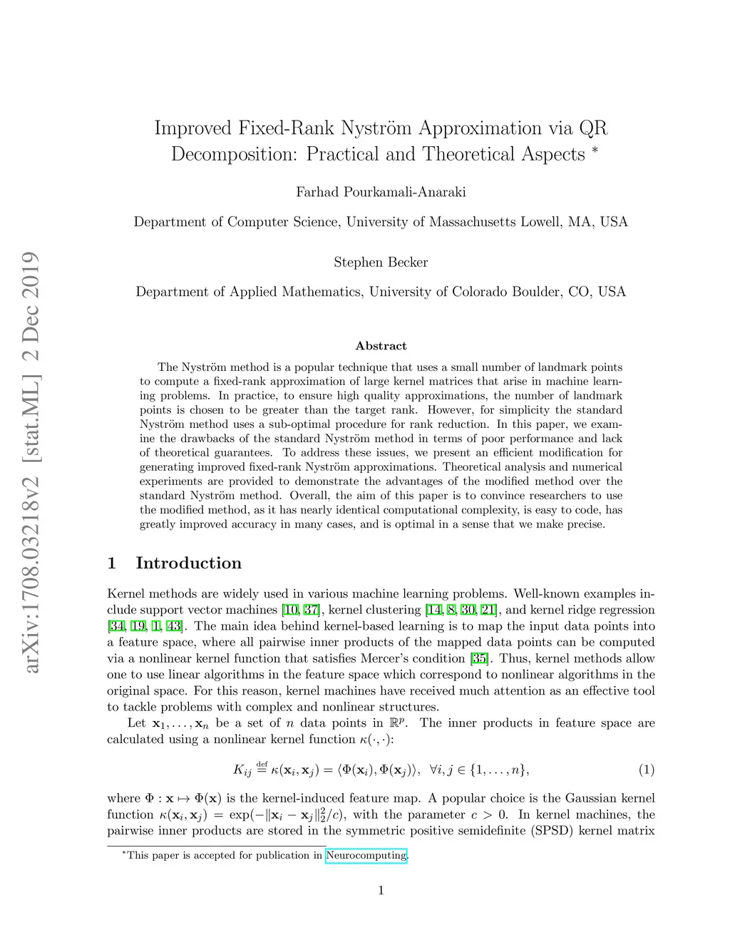 Improved Fixed-Rank Nyström Approximation via QR Decomposition: