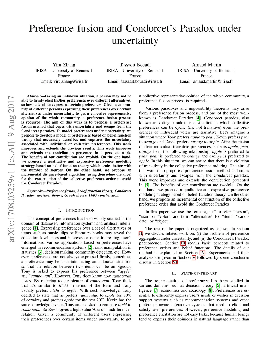 Preference fusion and Condorcet's Paradox under uncertainty