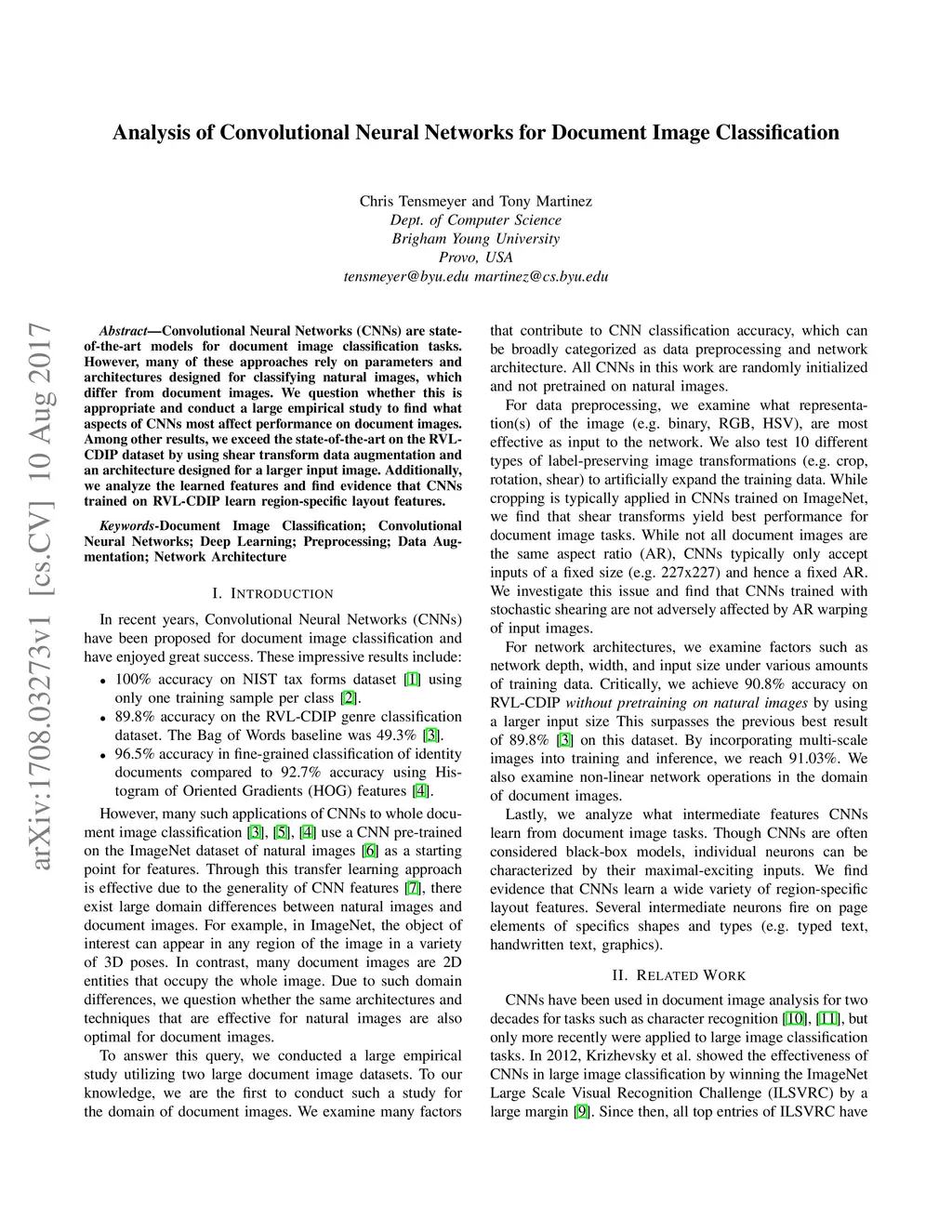 Analysis of Convolutional Neural Networks for Document Image