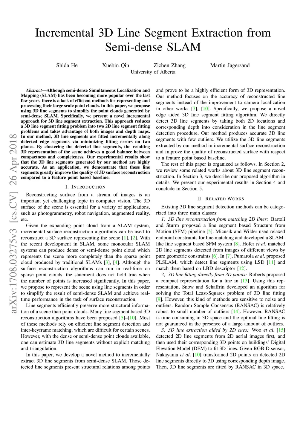 3D Line Segments Extraction from Semi-dense SLAM