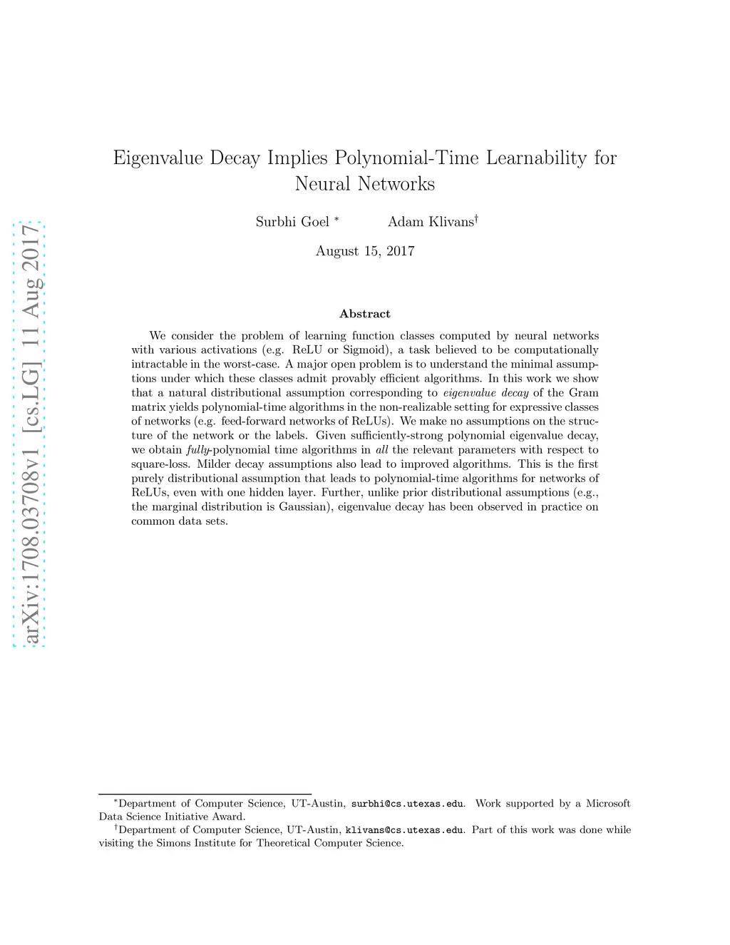 Eigenvalue Decay Implies Polynomial-Time Learnability for Neural