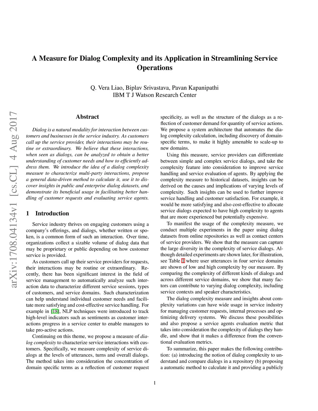 Dialog is a natural modality for interaction between customers and businesses in the service industry. As customers call up the service provider, their interactions may be routine or extraordinary. We believe that these interactions, when seen as dialogs, can be analyzed to obtain a better understanding of customer needs and how to efficiently address them. We introduce the idea of a dialog complexity measure to characterize multi-party interactions, propose a general data-driven method to calculate it, use it to discover insights in public and enterprise dialog datasets, and demonstrate its beneficial usage in facilitating better handling of customer requests and evaluating service agents.