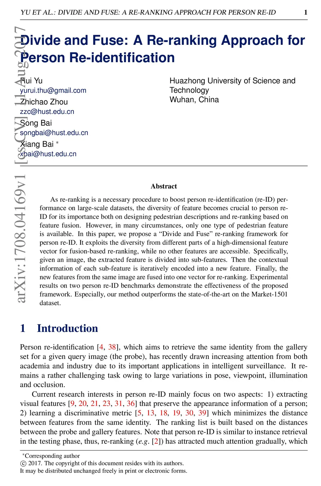 Divide and Fuse: A Re-ranking Approach for Person Re-identification