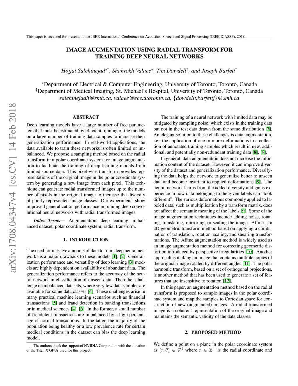 Image Augmentation using Radial Transform for Training Deep Neural