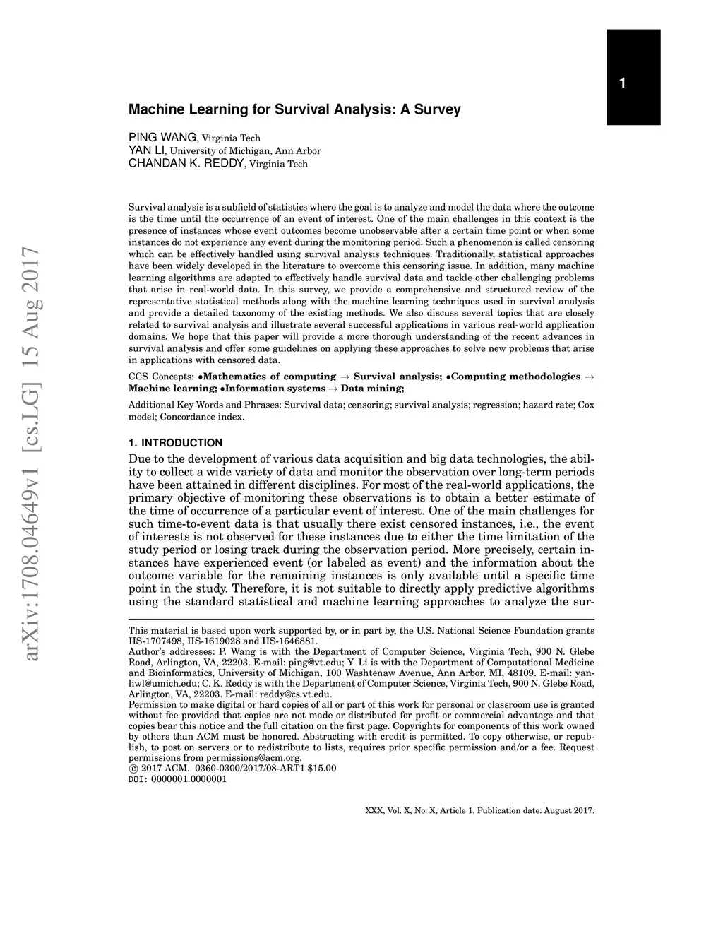 Accurately predicting the time of occurrence of an event of interest is a critical problem in longitudinal data analysis. One of the main challenges in this context is the presence of instances whose event outcomes become unobservable after a certain time point or when some instances do not experience any event during the monitoring period. Such a phenomenon is called censoring which can be effectively handled using survival analysis techniques. Traditionally, statistical approaches have been widely developed in the literature to overcome this censoring issue. In addition, many machine learning algorithms are adapted to effectively handle survival data and tackle other challenging problems that arise in real-world data. In this survey, we provide a comprehensive and structured review of the representative statistical methods along with the machine learning techniques used in survival analysis and provide a detailed taxonomy of the existing methods. We also discuss several topics that are closely related to survival analysis and illustrate several successful applications in various real-world application domains. We hope that this paper will provide a more thorough understanding of the recent advances in survival analysis and offer some guidelines on applying these approaches to solve new problems that arise in applications with censored data.