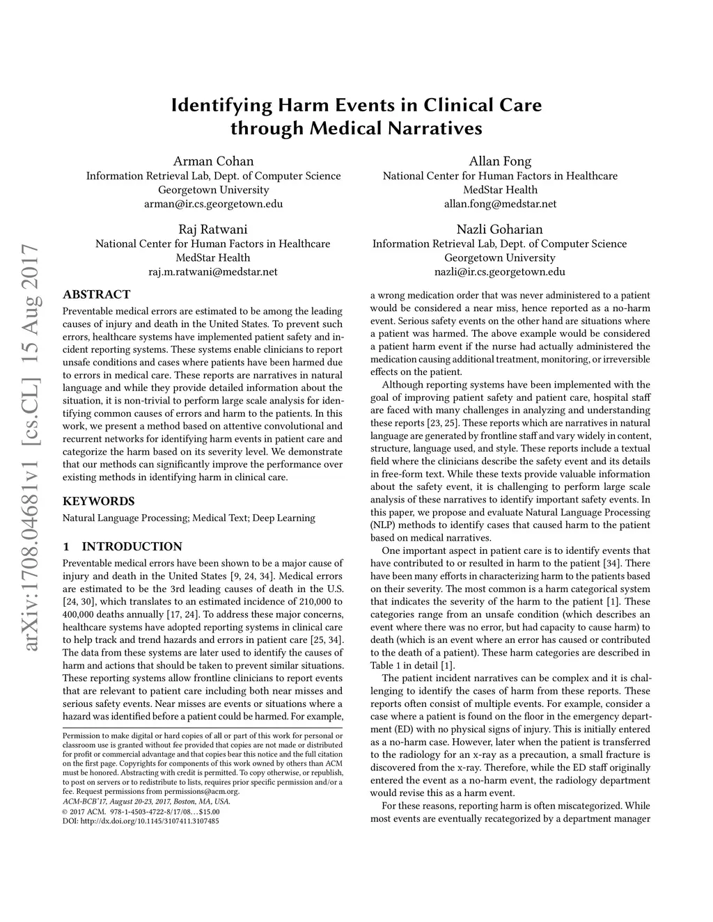 Identifying Harm Events in Clinical Care through Medical Narratives
