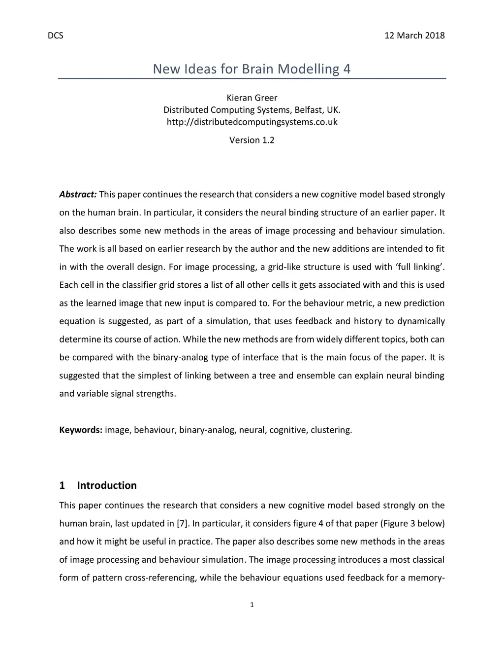 This paper continues the research that considers a new cognitive model based strongly on the human brain. In particular, it considers the neural binding structure of an earlier paper. It also describes some new methods in the areas of image processing and behaviour simulation. The work is all based on earlier research by the author and the new additions are intended to fit in with the overall design. For image processing, a grid-like structure is used with 'full linking'. Each cell in the classifier grid stores a list of all other cells it gets associated with and this is used as the learned image that new input is compared to. For the behaviour metric, a new prediction equation is suggested, as part of a simulation, that uses feedback and history to dynamically determine its course of action. While the new methods are from widely different topics, both can be compared with the binary-analog type of interface that is the main focus of the paper. It is suggested that the simplest of linking between a tree and ensemble can explain neural binding and variable signal strengths.