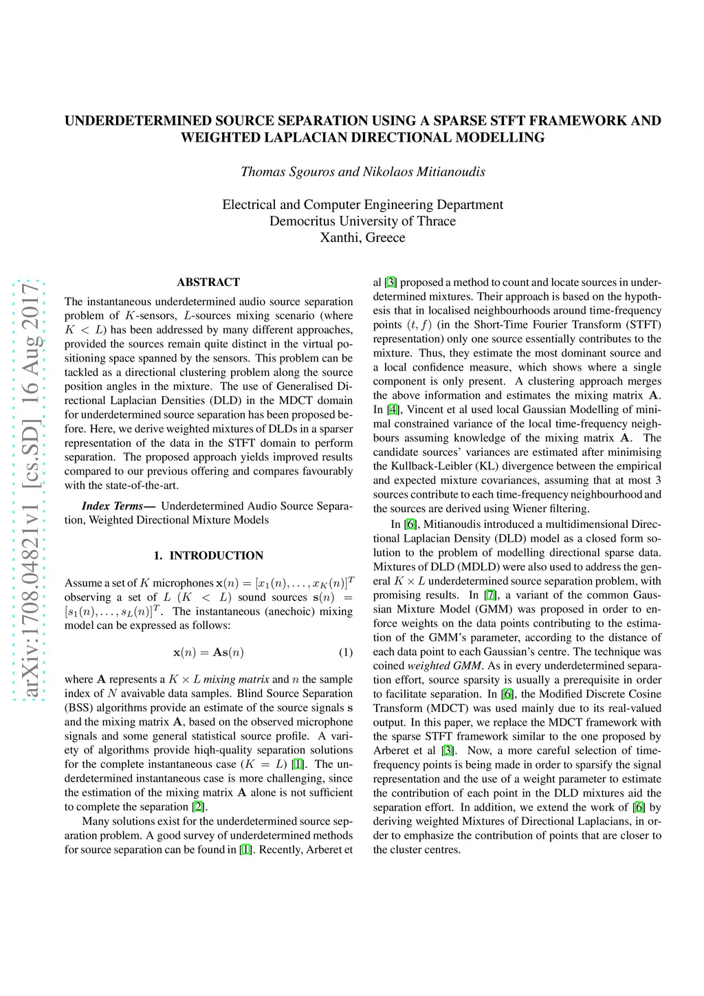 Underdetermined source separation using a sparse STFT framework and