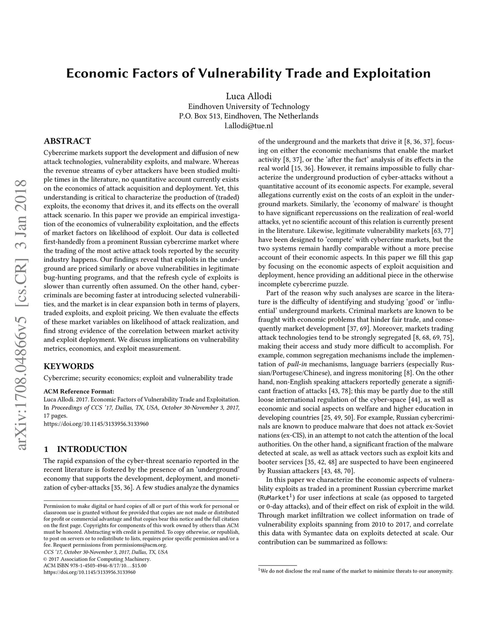 Economic Factors of Vulnerability Trade and Exploitation