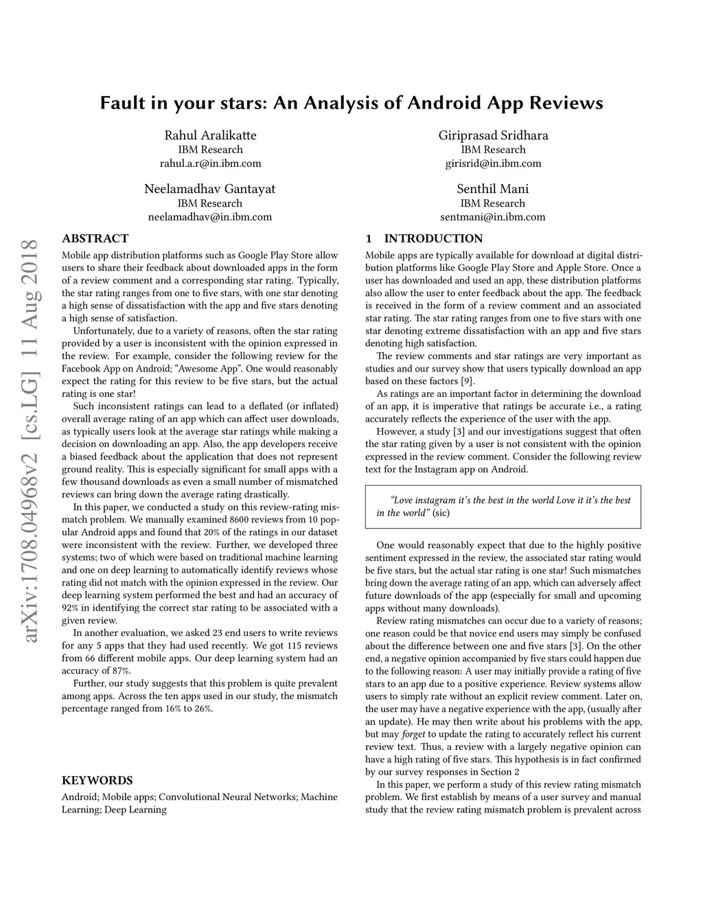 Fault in your stars: An Analysis of Android App Reviews