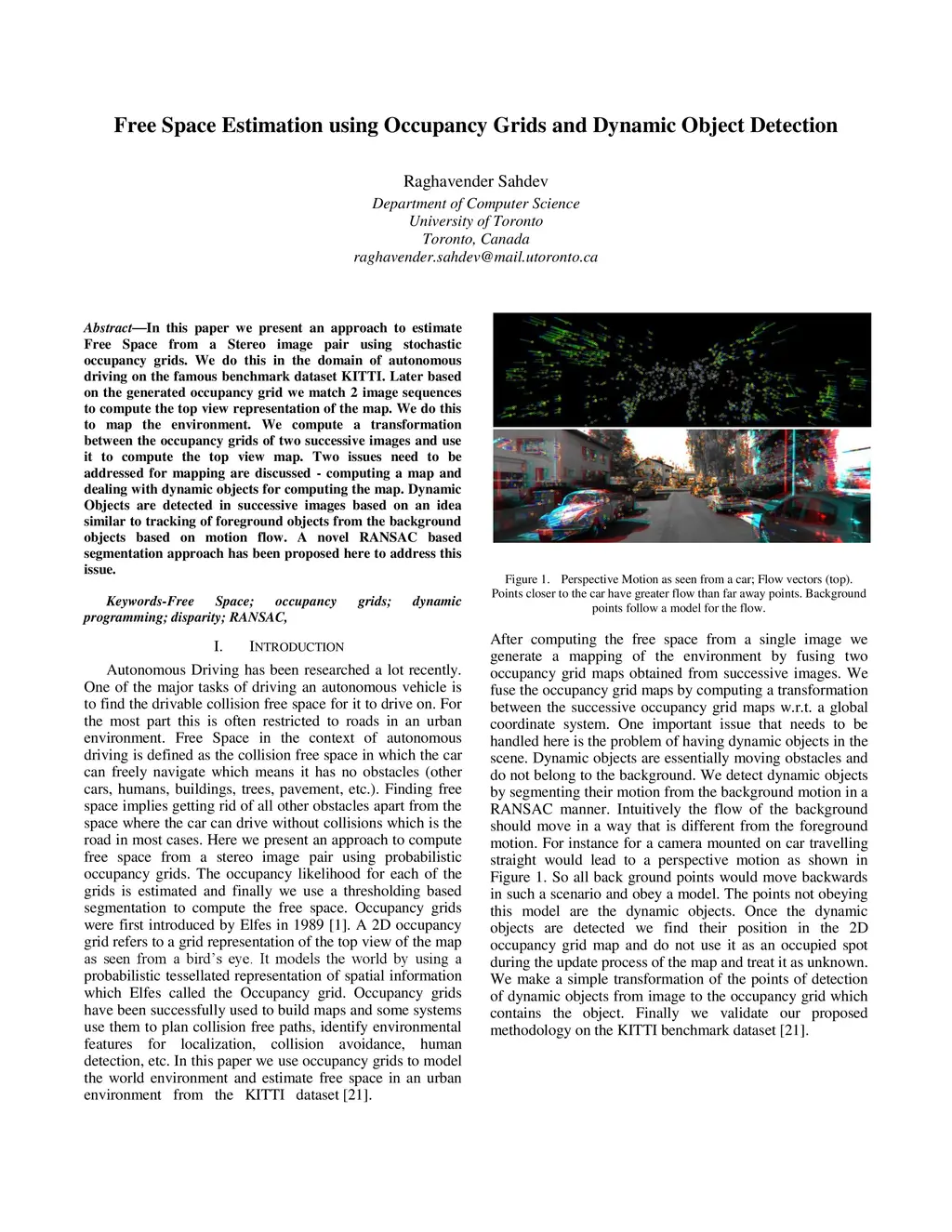 In this paper we present an approach to estimate Free Space from a Stereo image pair using stochastic occupancy grids. We do this in the domain of autonomous driving on the famous benchmark dataset KITTI. Later based on the generated occupancy grid we match 2 image sequences to compute the top view representation of the map. We do this to map the environment. We compute a transformation between the occupancy grids of two successive images and use it to compute the top view map. Two issues need to be addressed for mapping are discussed - computing a map and dealing with dynamic objects for computing the map. Dynamic Objects are detected in successive images based on an idea similar to tracking of foreground objects from the background objects based on motion flow. A novel RANSAC based segmentation approach has been proposed here to address this issue.