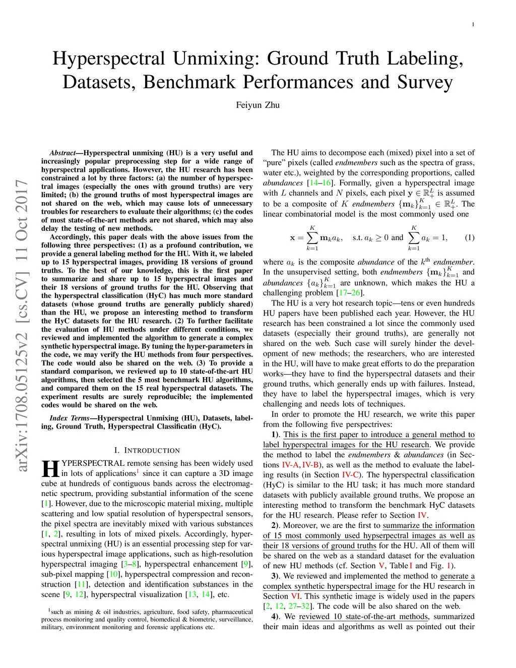 Hyperspectral Unmixing: Ground Truth Labeling, Datasets, Benchmark