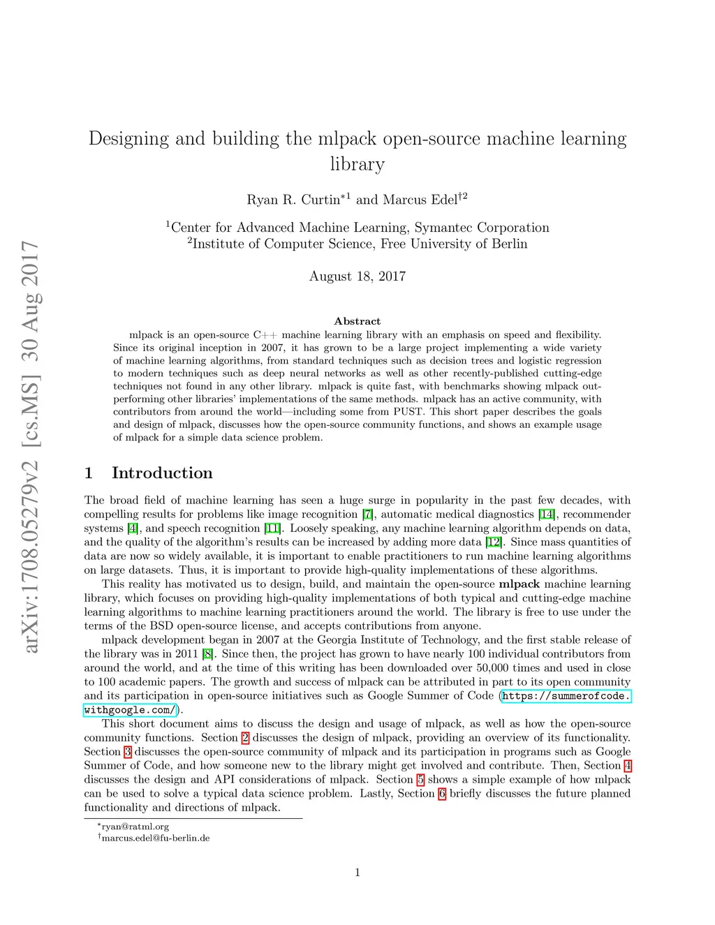 Designing and building the mlpack open-source machine learning library