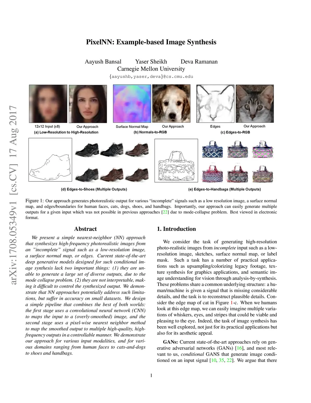 We present a simple nearest-neighbor (NN) approach that synthesizes high-frequency photorealistic images from an "incomplete" signal such as a low-resolution image, a surface normal map, or edges. Current state-of-the-art deep generative models designed for such conditional image synthesis lack two important things: (1) they are unable to generate a large set of diverse outputs, due to the mode collapse problem. (2) they are not interpretable, making it difficult to control the synthesized output. We demonstrate that NN approaches potentially address such limitations, but suffer in accuracy on small datasets. We design a simple pipeline that combines the best of both worlds: the first stage uses a convolutional neural network (CNN) to maps the input to a (overly-smoothed) image, and the second stage uses a pixel-wise nearest neighbor method to map the smoothed output to multiple high-quality, high-frequency outputs in a controllable manner. We demonstrate our approach for various input modalities, and for various domains ranging from human faces to cats-and-dogs to shoes and handbags.