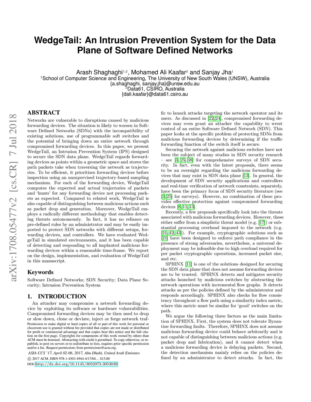 WedgeTail: An Intrusion Prevention System for the Data Plane of Software