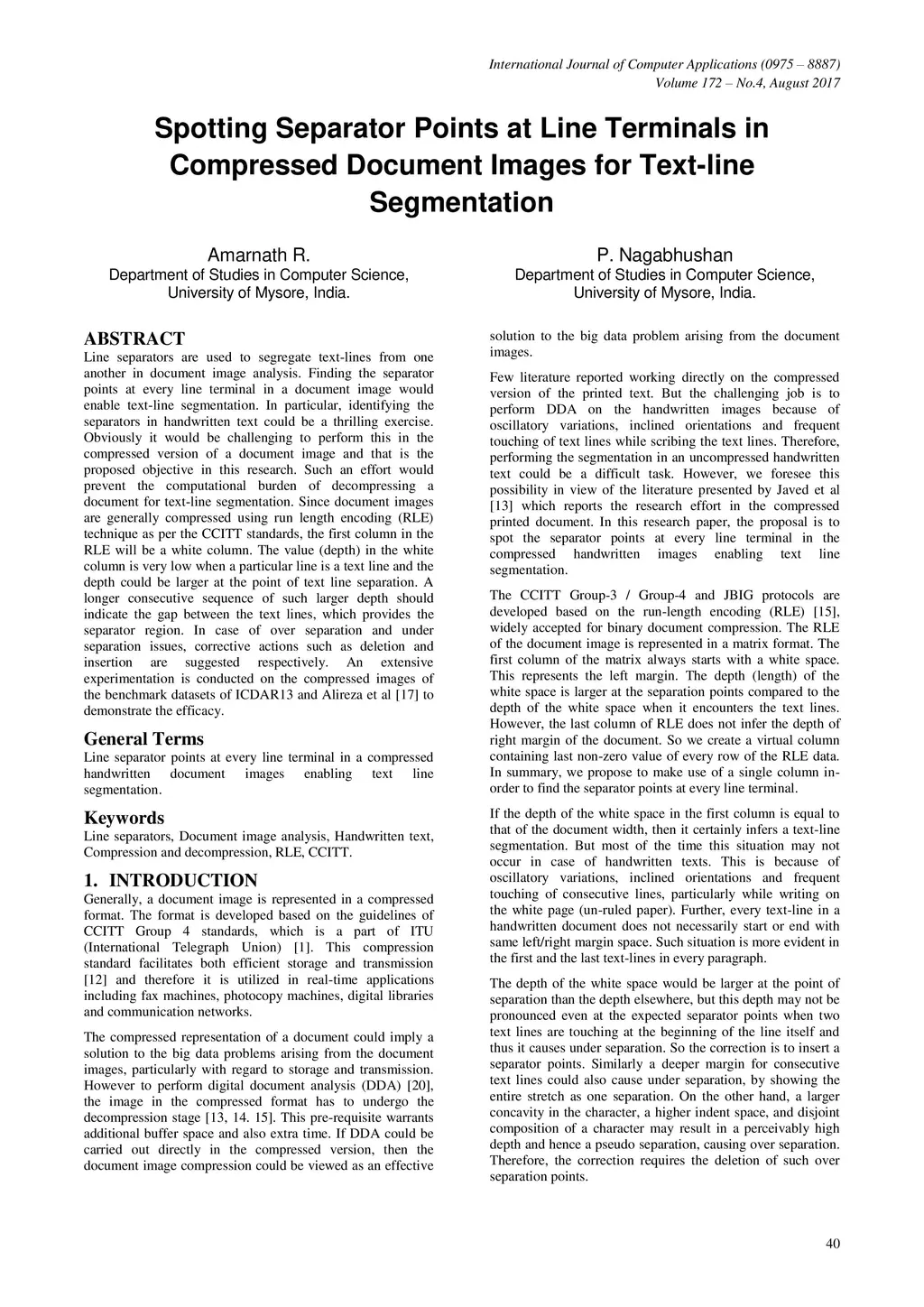 Spotting Separator Points at Line Terminals in Compressed Document