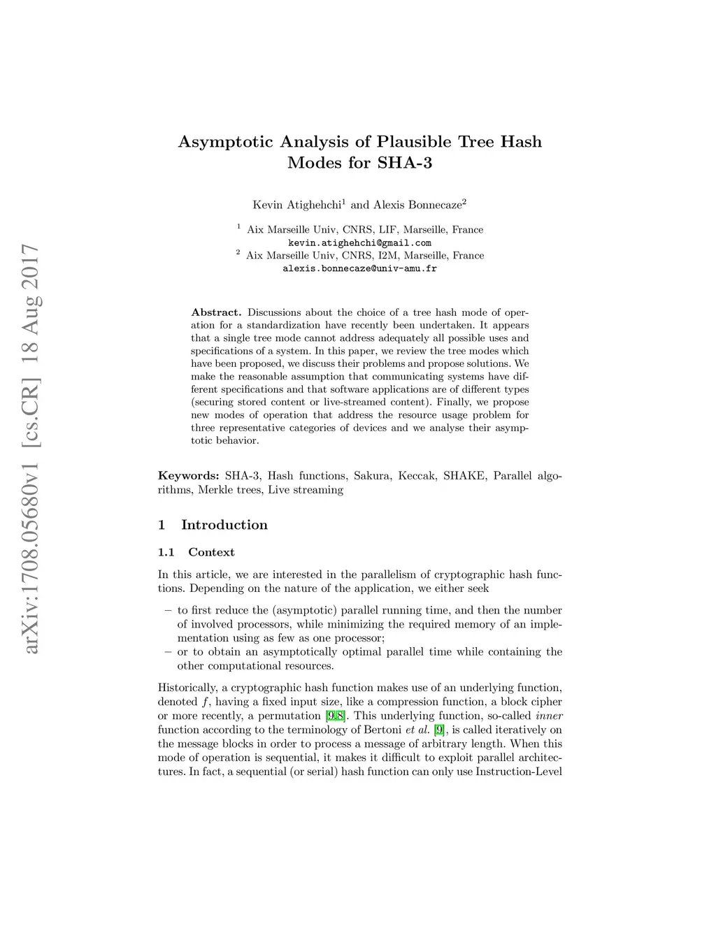 Asymptotic Analysis of Plausible Tree Hash Modes for SHA-3