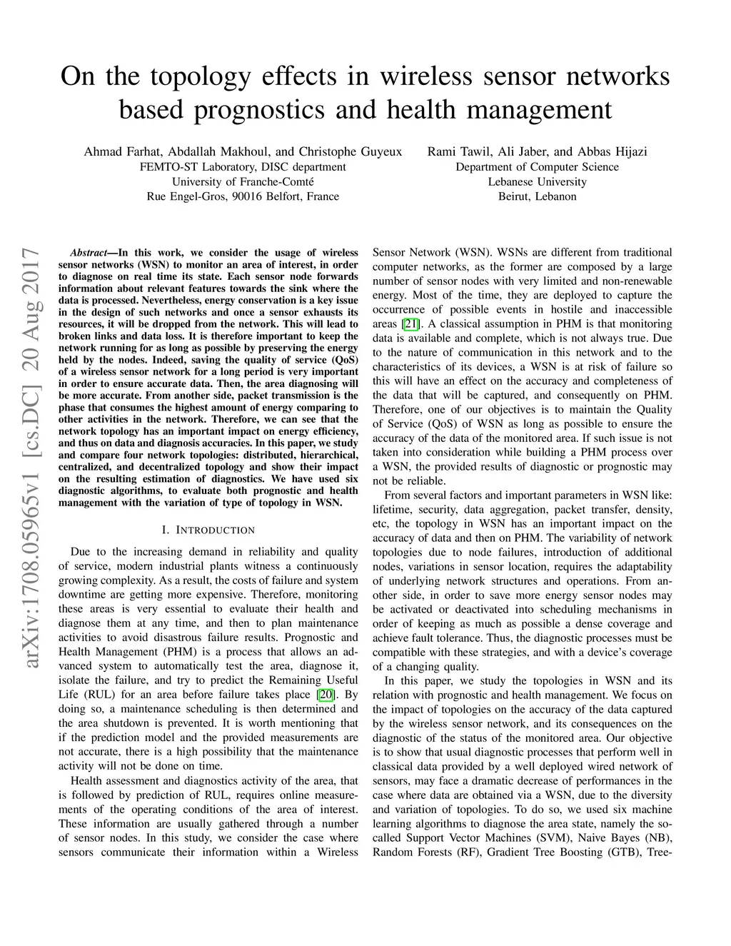 On the topology effects in wireless sensor networks based prognostics
