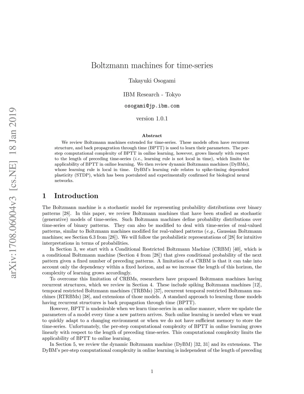 Boltzmann machines for time-series