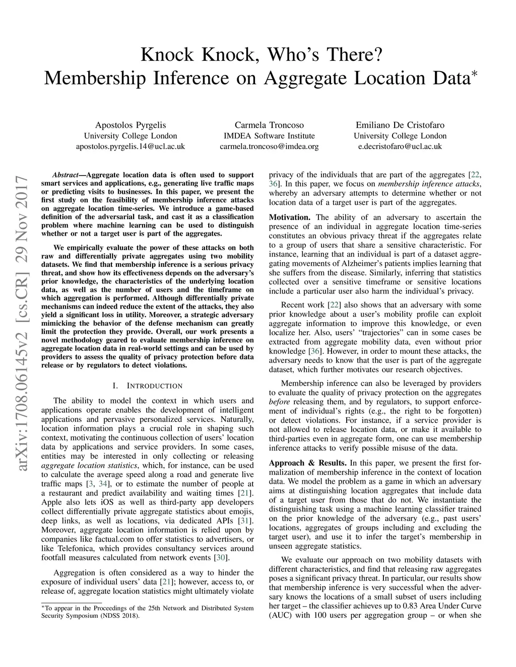 Knock Knock, Who's There? Membership Inference on Aggregate Location
